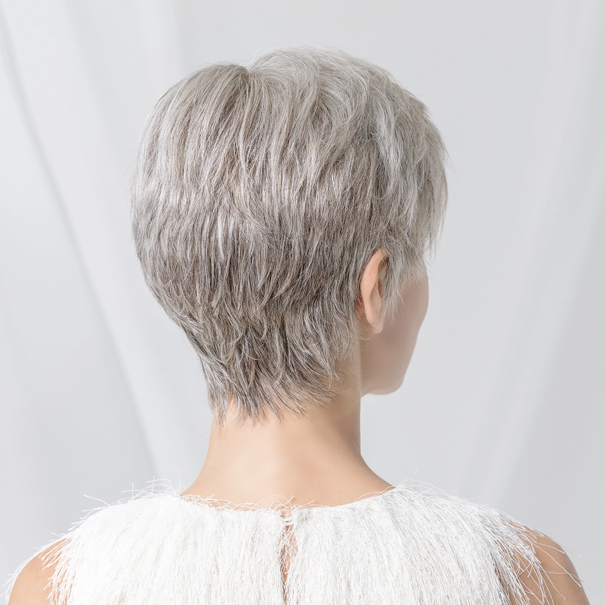 Im Bereich des gesamten Oberkopfes befindet sich Monofilament – ein auf der Haut unsichtbares Gewebe – in das die Haare in feiner Handarbeit einzeln eingeknüpft sind. Der Hinterkopf dieser Perücke besteht aus einer tressierten Montur, bei der die Haare kunstvoll auf feine Baumwollbänder genäht sind. Die Tresse passt sich sehr gut der Kopfform an und verfügt über eine sehr gute Luftzirkulation. Im leicht einsehbaren Bereich des Oberkopfes sorgt das handgeknüpfte Monofilament für besondere Natürlichkeit.